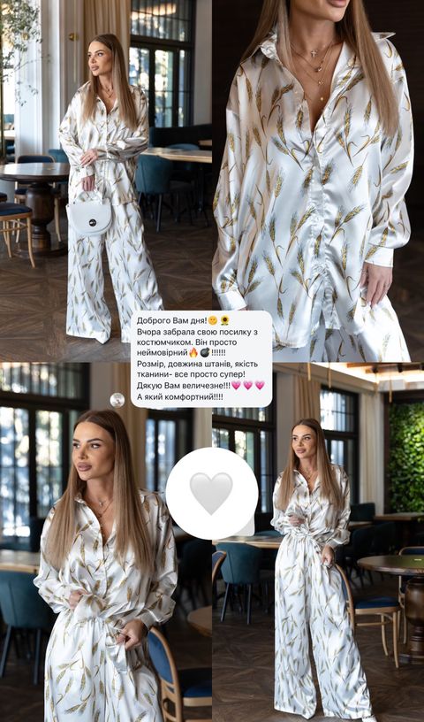 - Брюки палаццо: талія на резинці, вільно спадають донизу, виконані із льону "жатка неаполь"