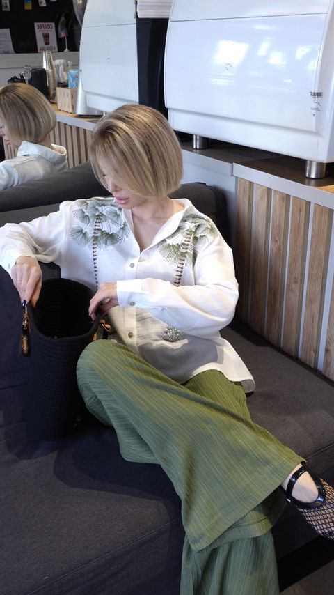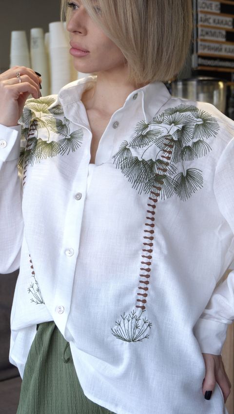 - Блуза: оверсайз, виконана із 100% льону, має вишивку ручної роботи